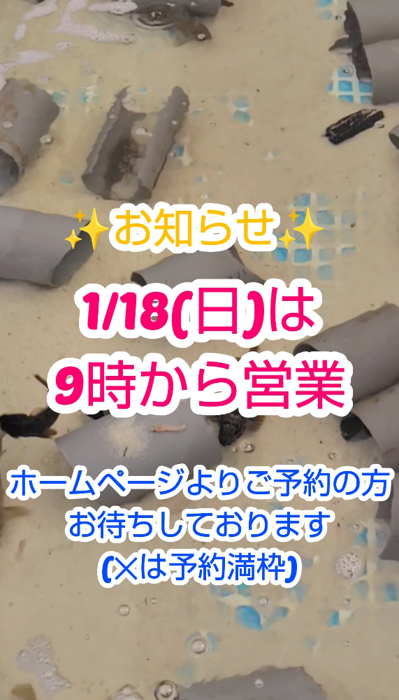 不定期営業でご迷惑をお掛けしております。1月18日(日)は9時から営業致します。現在、ご予約受付中です!!