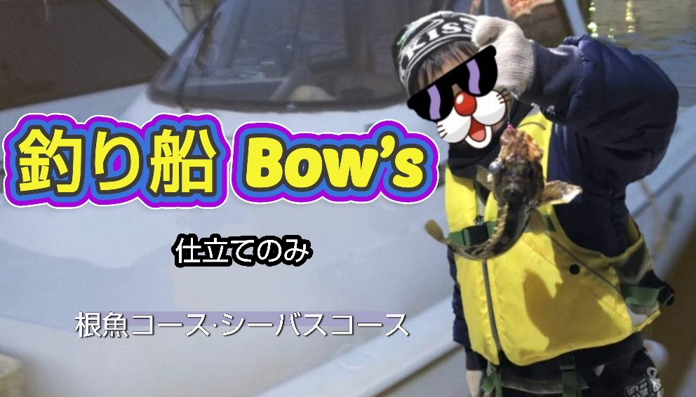 | 貸切料金 | 停泊根魚→4時間 25,000円 「カサゴ、メバルなど」 船流し →3時間 25,000円 「シーバス」 4名までの貸切 追加乗船 1名毎 5,000円 |