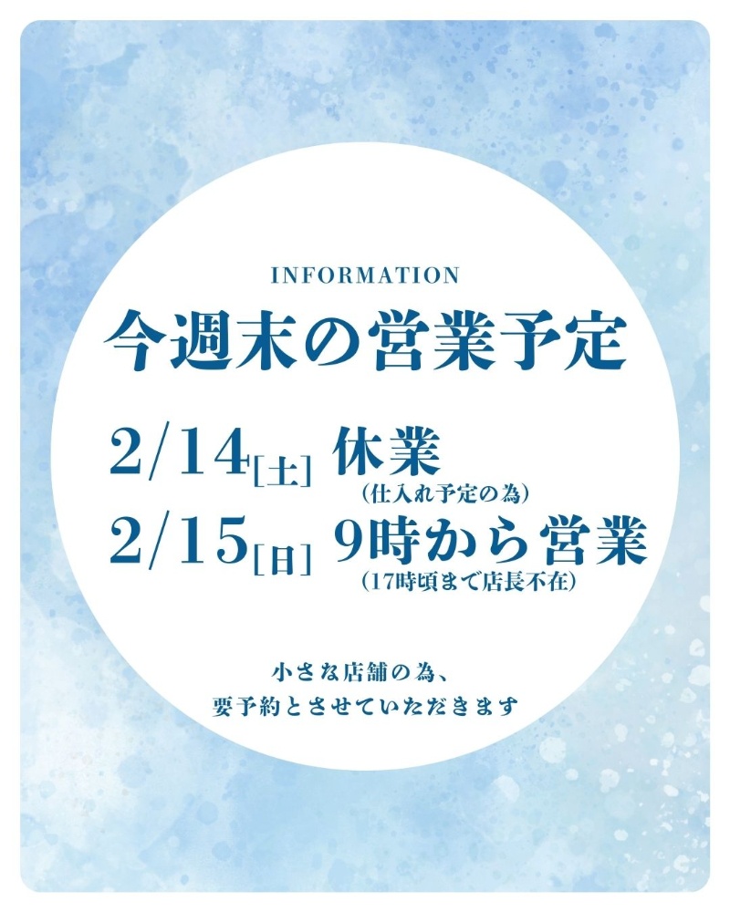 今週末の営業予定となります。